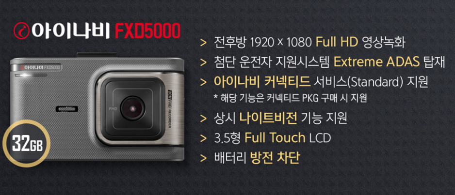 두 번째 준비물은 어쩌다 찾은 할인 예약 구매한 제품인 아이나비 FXD5000 입니다. (아래 광고 사진 및 야간 촬영 영상)